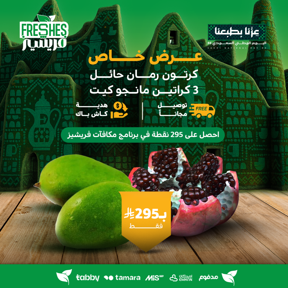 كرتون رمان حائل + 3 كراتين مانجو كيت بـ295 ريال فقط! 🥭